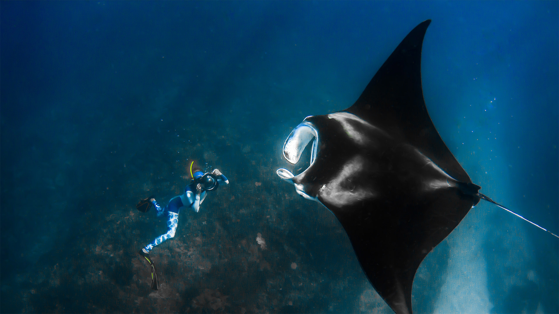 Giant manta ray and a photographer off the Ningaloo Coast